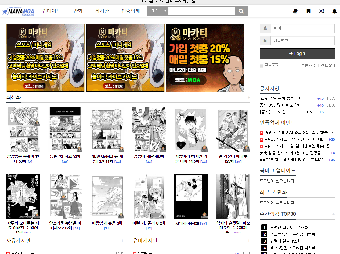 요즘따라 마나모아 사이트 주소가 자주 바뀌는것 같네요