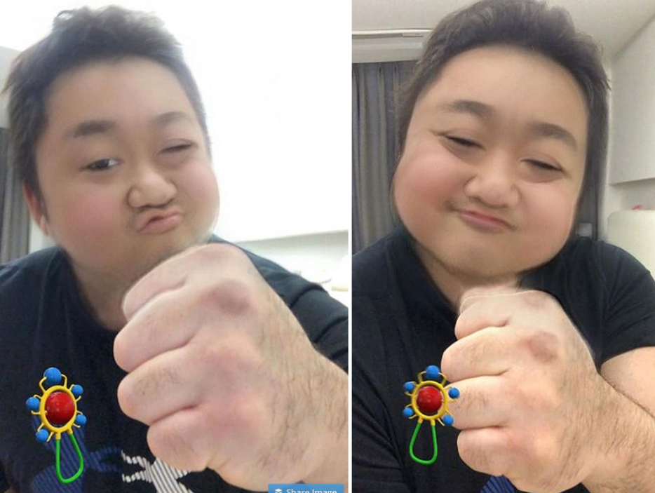 자신의 셀카 사진을 스냅쳇 어플에 넣고 돌리면 위 그림과 같이 어렸을적 내모습이 자동으로 나오게 됩니다.